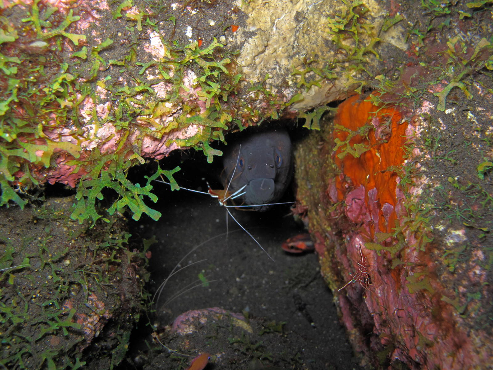 Moray eel with cleaner shrimp